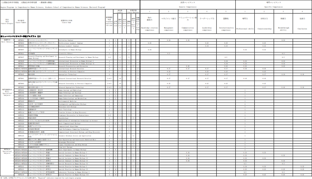 Initiation Seminar aims to lead the students to learn the purpose of human re- source development and program curricula of the Ph.D. Program in Human Bi- ology. Listening to practical lectures by academic researchers, government ad- ministrators, and entrepreneurs or researchers who successfully work at business companies, the students will understand the diverse career paths possible after completion of the program. In this seminar, the students will have discussions with their classmates on their future career paths and study proposals, and write a report on their learning objectives and future directions of their study. | Lectures are conducted in English. 4/10午後 主専攻必修科目。 face-to-face ※ This course is basically given with "face to face" style. However, the recorded online lecture is provided to students who cannot take the face-to-face class. |