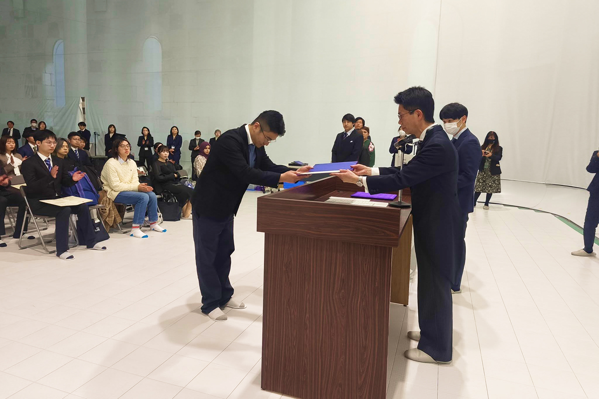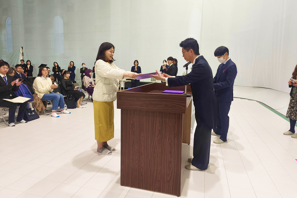 2026.03.31 令和8年3月25日(水)グローバル教育院・学位記授与式が行われました。 HBPでは、Yuan Yaoさん、Hanbin Leeさん、木下翔太さん、武富巧さん、三上夏輝さん、Ching-Wei Liaoさん、Qingyin Qianさんの7名に博士(人間生物学)の学位が授与されました。 Qingyin Qianさんが筑波大学校友会江崎賞、人間総合科学学術院長賞を受賞しました。 みなさん、おめでとうございます!!!